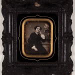 Abbildung: Die Rückseite ist mit schwarzem Papier beklebt, darauf befindet sich ein weißes Papieretikett mit blauer Rahmung mit dem handschriftlichen Vermerk: “Nachlass Peters”.