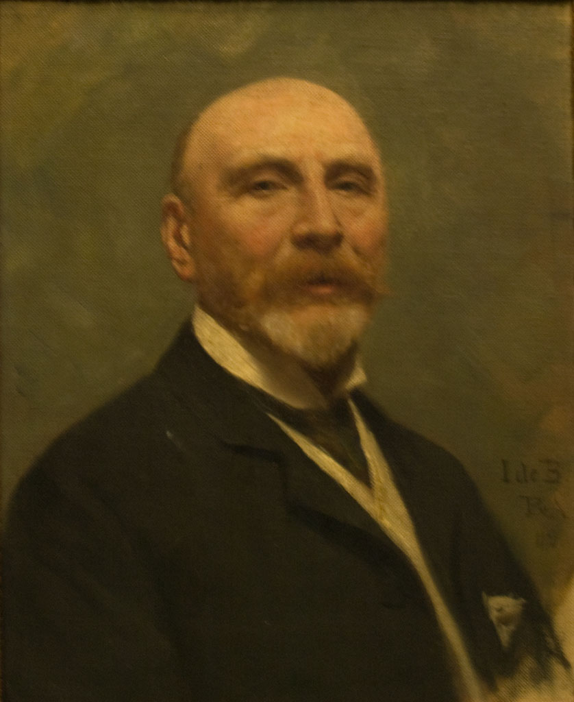 Abbildung: Hermann Moses Robinow, geb. 31.3.1837 in Hamburg, gest. 27.7.1922 ebd., Sohn des Kaufmanns Siegmund Robinow und der Therese Dieseldorf. Als Kaufmann in Hamburg ansässig. 1.6.1865 Heirat mit Flora May. (Jaacks 1992: 59). Brustbild nach rechts, vor neutralem Hintergrund, in schwarzer Jacke mit Kavaliertaschentuch, weißer Weste und schwarzer Krawatte; kurzes, glattes Haar, Schnurr- und Kinnbart.